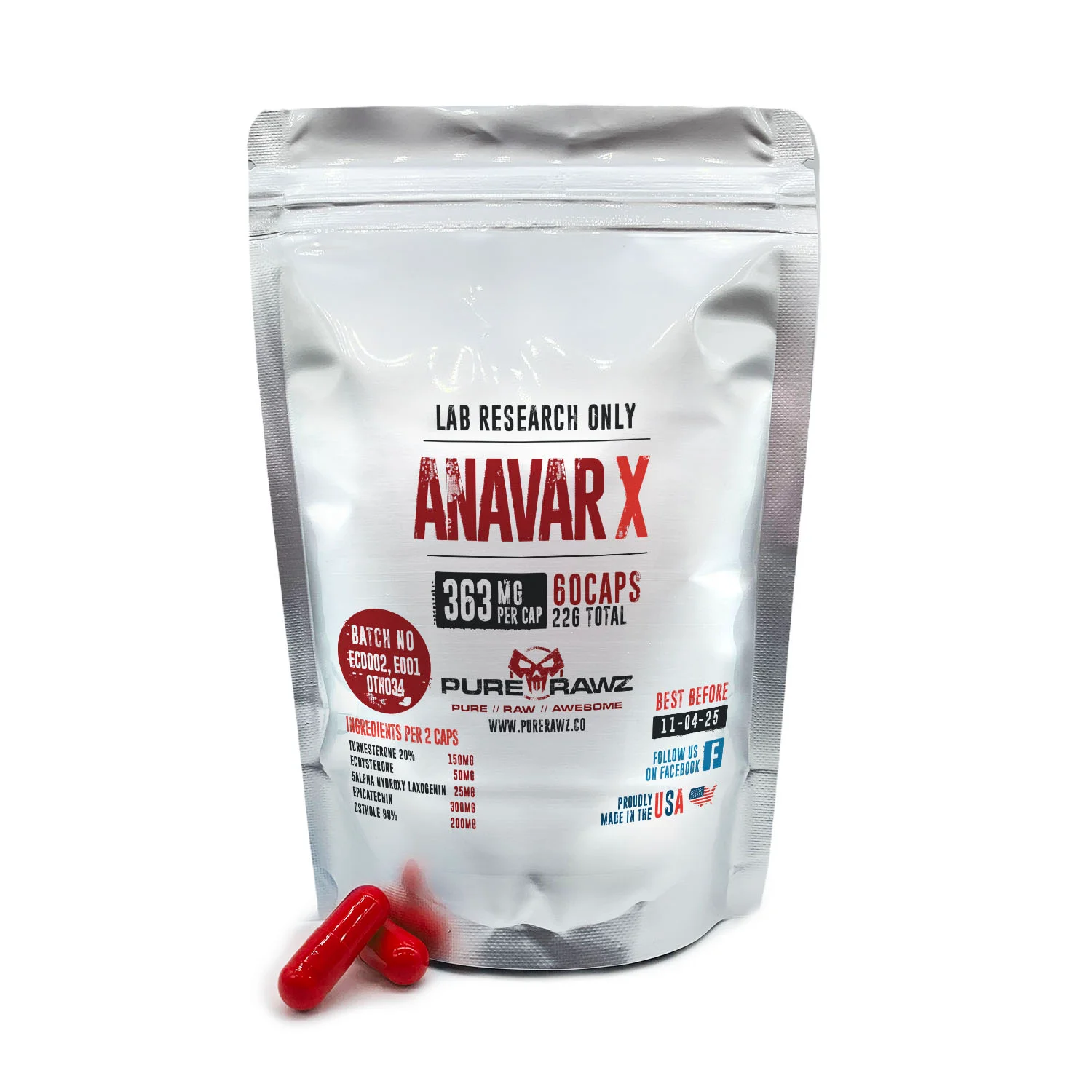Anavar X Capsules (Turkesterone 20% + Beta-Ecdysterone + 5 Alpha-Hydroxy-Laxogenin + Epicatechin + Osthole 98%) – Product Information AnaVAR X is a compound formulated to support research on its potential applications to enhance performance, muscle growth, and overall physical well-being. AnaVAR X combines a synergistic blend of carefully selected compounds, each with its unique properties and potential benefits. AnaVAR X consists of the following compounds per 2 capsules: Turkesterone 20% – 150mg Beta-Ecdysterone – 50mg 5 Alpha-Hydroxy-Laxogenin – 25mg Epicatechin – 300mg Osthole 98% – 200mg This consists of 363mg per capsule for 60 capsules, totaling 22g. PureRawz offers a unique product containing a blend of carefully selected ingredients that are believed to mimic the potential research benefits associated with Anavar while emphasizing that this product is not Anavar itself. The AnaVAR X for sale from PureRawz is for research purposes only and is not for human consumption. Turkesterone 20% Turkesterone is an ecdysteroid, which is a hormonal anabolic compound that can be found in certain plants. Ecdysteroids are in themselves a class of compounds that are structurally similar to conventional anabolic androgens. However, unlike your conventional anabolic compounds, ecdysteroids have gained notoriety in the research world for their distinction of not binding to androgen receptors, meaning potentially no of the conventional side effects, while still providing similar results. [ R] Although not using the same mechanism of action as your normal anabolic compounds, Turkesterone is known as the most potent of all ecdysteroids due to its potential high anabolic activity. Turkesterone CAS Number 41451-87-0 Molar Mass 496.641 g/mol Chemical Formula C27H44O8 IUPAC Name (2S,3R,5R,9R,10R,11R,13R,14S,17S)-2,3,11,14-tetrahydroxy-10,13-dimethyl-17-[(2R,3R)-2,3,6-trihydroxy-6-methylheptan-2-yl]-2,3,4,5,9,11,12,15,16,17-decahydro-1H-cyclopenta[a]phenanthren-6-one Beta-Ecdysterone Beta-Ecdysterone , also known as 20-Hydroxyecdysone, belongs to the group of phytoecdysteroids, which are naturally occurring hormones found in arthropods and certain plants. There are many different types of phytoecdysteroids, with Ecdysterone being one of the most researched compounds. It is considered a natural agent that works by binding to estrogen receptors. A recent study investigated the performance-enhancing effects of ecdysterone on strength. This study utilized 46 participants who were administered an ecdysterone sample or a placebo for 10 weeks. The group that took the ecdysteroids showed a potentially pronounced increase in 1RM max bench press without any adverse effects. The group also potentially increased their squat by 19.4%, from 100kg to 120kg. [R] Beta-Ecdysterone CAS Number 5289-74-7 Molar Mass 480.63 g/mol Chemical Formula C27H44O7 IUPAC Name (2 S ,3 R ,5 R ,10 R ,13 R ,14 S ,17 S )-2,3,14-trihydroxy-10,13-dimethyl-17-[(2 R ,3 R )-2,3,6-trihydroxy-6-methylheptan-2-yl]-2,3,4,5,9,11,12,15,16,17-decahydro-1 H -cyclopenta[a]phenanthren-6-one 5 Alpha-Hydroxy-Laxogenin 5 Alpha Hydroxy Laxogenin, or Laxogenin for short, is a plant-based steroid. This means it helps plants to grow. Laxogenin is derived from brassinosteroids. Brassinosteroids are a group of plant hormones that have been researched for their potential to increase protein synthesis and decrease protein degradation in cell culture. [ R ] In a recent study, a specific type of brassinosteroid produced a stimulatory effect on protein synthesis in muscle cells. This led to potential increases in lean body mass, muscle mass, and physical performance. [ R ] 5a-Hydroxy Laxogenin CAS Number 56786-63-1 Molar Mass 446.6 g/mol Chemical Formula C27H42O IUPAC Name (1S,2S,4S,5’R,6R,7S,8R,9S,12S,13R,16S,18R)-16,18-dihydroxy-5′,7,9,13-tetramethylspiro[5-oxapentacyclo[10.8.0.02,9.04,8.013,18]icosane-6,2′-oxane]-19-one Epicatechin Epicatechin is an antioxidant flavonoid that comes from wood-derived plants in epicatechin and catechin forms. Catechin itself is a tannin, a potent antioxidant and water-soluble polyphenol that occurs naturally and exclusively in white and green tea. This is due to the oxidation process that works to eliminate catechins found in black tea. According to research, catechin is a potential future consideration for inclusion in supplements because of its potential ability to adhere to proteins, thus preventing the attachment of bacteria onto cell walls and prohibiting their destruction. [R] Epicatechin CAS Number 72276 Molar Mass 290.27 g/mol Chemical Formula C15H14O6 IUPAC Name (2 R ,3 R )-2-(3,4-dihydroxyphenyl)-3,4-dihydro-2 H -chromene-3,5,7-triol Osthole 98% Osthole is an O-methylated coumarin, which is commonly found in plants such as Cnidium monnieri, Angelica pubescens, and Angelica archangelica. In vitro and in vivo experimental study results have revealed that Osthole demonstrates a potential in a multitude of pharmacological actions, including neuroprotective, osteogenic, immunomodulatory, anticancer, hepatoprotective, cardiovascular protective, and antimicrobial activities. [R] Osthole 98% CAS Number 484-12-8 Molar Mass 244.29 Chemical Formula C15H16O3 IUPAC Name 7-Methoxy-8-(3-methylbut-2-en-1-yl)-2H-1-benzopyran-2-one What is Anavar? (Not AnaVAR-X) Anavar is a brand name for the synthetic steroid called Oxandrolone, which was introduced in the US in 1964. It is a synthetic derivative of testosterone but with only 5% of the virilizing activity and much lower hepatotoxicity (ability to cause liver damage or injury). [ R ] Research has shown that Anavar can promote weight gain in people who have lost too much weight due to injury, surgery, chronic infections, or trauma. It has also been shown to reduce bone pain in people with osteoporosis and cause sustained decreases in body fat. [ R ] Anavar has also exhibited the ability to counteract the catabolic effects of long-term corticosteroid therapy. Plus, a systematic r