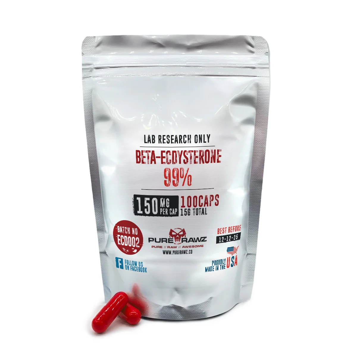 Beta-Ecdysterone Capsules (99% Purity) – Product Information Beta-Ecdysterone, also known as ecdysterone, is a naturally occurring compound found to potentially improve physical performance. Recent research suggests that the anabolic impact of ecdysterone is mediated by estrogen receptor (ER) binding. In a recent rat study, ecdysterone showed to be even more effective than illegal anabolic substances (such as Ametandienone and others). Human studies in science, however, are incredibly uncommon. [R] Beta-Ecdysterone CAS Number 5289-74-7 Molar Mass 480.63 g/mol Chemical Formula C27H44O7 IUPAC Name (2 S ,3 R ,5 R ,10 R ,13 R ,14 S ,17 S )-2,3,14-trihydroxy-10,13-dimethyl-17-[(2 R ,3 R )-2,3,6-trihydroxy-6-methylheptan-2-yl]-2,3,4,5,9,11,12,15,16,17-decahydro-1 H -cyclopenta[a]phenanthren-6-one What is Ecdysterone? Ecdysterone, also known as 20-hydroxyecdysone, is a rare and potent substance that is found in nature. Given that it resembles the structure of the human hormone testosterone almost exactly, it is also known as a plant steroid. As mentioned above, research suggests that the anabolic impact of ecdysterone is mediated by estrogen receptor (ER) binding. How does Beta-Ecdysterone Work? It has been shown that ecdysterone increases skeletal muscle protein synthesis. Gorelick et al. suggested that this elevated protein synthesis was caused by direct or indirect activation of the PI3K/Akt signaling pathway. [R] Beta-Ecdysterone Research Ecdysterone has been extensively studied in vivo studies that have noted increased anabolism in a wide variety of animals. Below follows some of the relevant findings: Increase Protein Synthesis A recent study investigating the effects of phytoecdysteroids showed a potential increase in 20% protein synthesis. They also showed in this study that it increased rat grip strength, implying that ecdysteroids could potentially help with strength. This protein synthesis is created by stimulation of the PI3K pathway. Protein synthesis is extremely important in the muscle-building process. Having a higher protein synthesis can lead to faster muscle recovery and muscle mass. This 10-week study was performed on young men who consumed Ecdysterone daily, this resulted in potentially significant lean muscle mass and strength increases, without adverse effects. [R] Muscle Strength A recent study investigated the potential performance-enhancing effects of ecdysterone on strength. This study utilized 46 participants being administered an ecdysterone supplement or placebo for a period of 10 weeks. The group who took the ecdysteroids showed potentially a pronounced increase in 1 rep bench press without any adverse effects. The group also increased their squat by 19,4%, from 100kg to 120kg [R]. Additionally, the group upped their squat by 19,4%, moving from 100 to 120 pounds. Rats’ enormous gain in grip strength was previously demonstrated by another above-mentioned study. Anabolic Effect and Potential to Promote Muscle Growth Ecdysterone has a greater anabolic effect than SARMs, Dianabol, and Dienedione, according to a study on the anabolic potency of the hormone. Given that each of those substances has shown to be really helpful for muscle growth or muscle hypertrophy and increasing lean muscle mass, this is pretty absurd. A 1988 study comparing the effects of Dianabol and Ecdysteroids on physical endurance revealed that Ecdysterone has a more noticeable effect. [R] FAQs What Distinguishes Beta-Ecdysterone from Turkesterone? The main contrast is that human trials of ecdysterone have been conducted. Turkesterone hasn’t had, on the other hand. An investigation of ecdysterone’s impact on muscle mass appeared in the Archives of Toxicology in 2019. These results revealed that ecdysterone had a significant positive impact on lean mass and strength. [R] Where to Buy Beta-Ecdysterone Online PureRawz is the best place to buy Ecdysterone for sale. In order to be the best research compound supplier, we provide reference materials with every product we sell. Each of our research compounds comes with an independent, third-party-issued Certificate of Analysis for identification, purity, and concentration. We offer free international shipping on all orders above $100. You can pay for your purchase through various methods, including PayPal and Bitcoin. Click on the ‘Reviews’ tab to check out what existing customers say about our products and great customer service. Summary Beta-Ecdysterone has a strong anabolic potential, and several studies have even found that it may have the potential to boost human muscular mass and strength. This natural anabolic agent is being studied for its potential to improve athletic performance and shows exceptional benefits. More human experiments, though, are required to support these findings and evaluate Beta-Ecdysterone as a potential dietary supplement. Disclaimer This information is for educational purposes only and does not constitute medical advice. THE PRODUCTS DESCRIBED HEREIN ARE FOR LABORATORY AND RESEARCH USE ONLY. All clinical research must be conducted with oversight from the appropriate Institutional Review Board (IRB). All preclinical research must be conducted with oversight from the appropriate Institutional Animal Care and Use Committee (IACUC) following the guidelines of the Animal Welfare Act (AWA). Our content is intended to be used and must be used for informational purposes only. It is very important to do your own analysis and research from Trusted Sources before making any purchase, based on your personal circumstances. You should independently research and verify any information that you find on our Website and wish to rely upon. By completing and paying for your order, you agree to our Terms and Conditions . Customer satisfaction is our number one priority. If you are not 100% satisfied with the product you received, please contact us at support@purerawz.co ATTENTION: All our products are for LABORATORY AND RESEARCH PURP