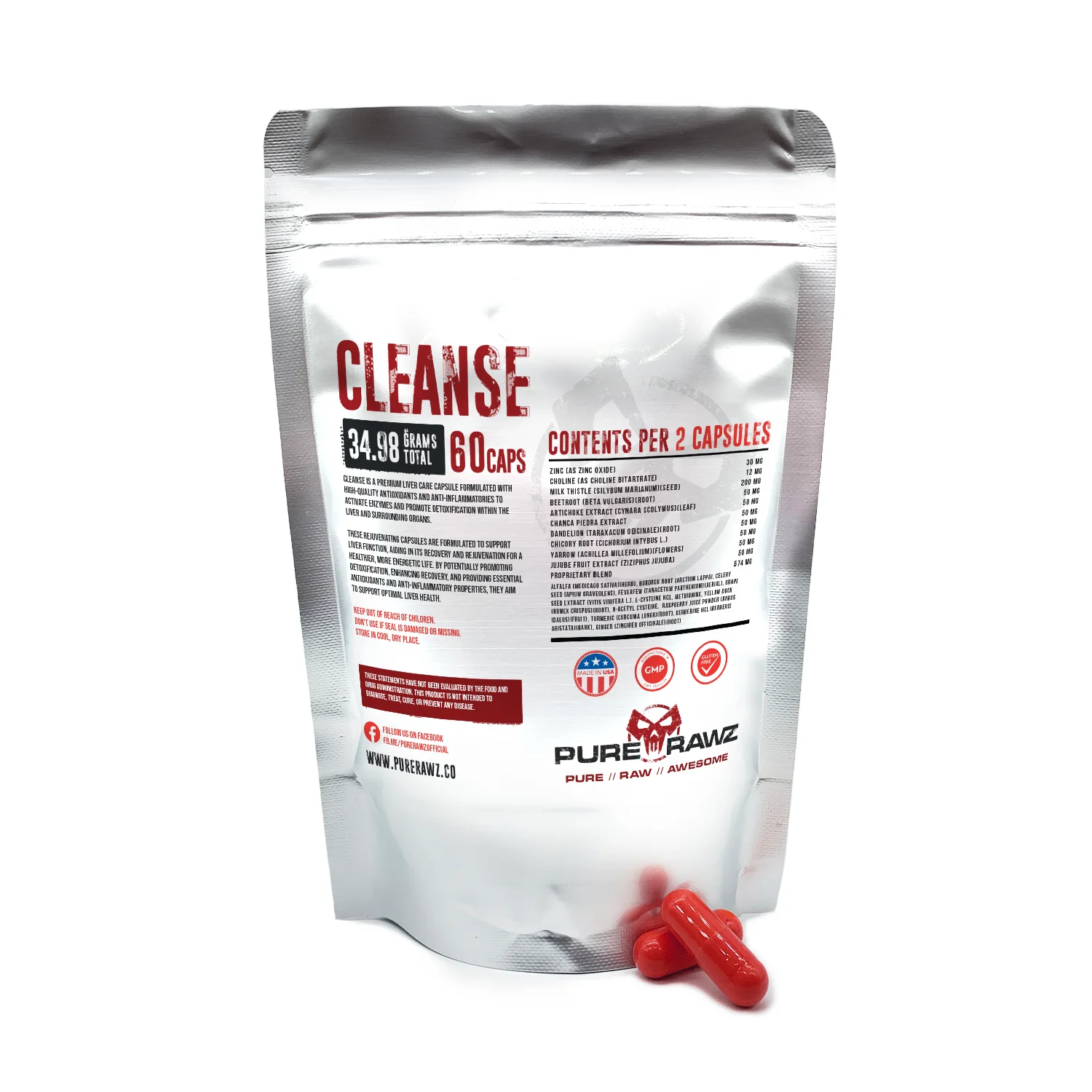 What are Cleanse Capsules? The liver is the largest organ in your body. It performs over 500 distinct functions within the body. Detoxification and elimination of contaminants are among these functions. The destruction of the body’s natural detoxification process results in liver diseases and liver inflammation. Cleanse, our advanced liver care capsule, is a high-quality antioxidant and anti-inflammatory formulation that may assist in activating enzymes and promoting liver detox and other adjacent organs. Cleanse is intended to assist the liver in its potential recovery and rejuvenation. Cleanse Capsule Contents Amount per Serving Zinc as (zinc oxide) 30mg Choline (as Choline Bitartrate) 12mg Milk Thistle (Silybum marianum)(seed) 200mg Beetroot (Beta Vulgaris)(root) 50mg Artichoke Extract 50mg Chanca Piedra Extract (Phyllanthus urinaria L)(whole plant) 50mg Dandelion (Taraxacum officinale)(root) 50mg Chicory Root (cichorium intybus L) 50mg Yarrow (Achillea millefolium)(flowers) 50mg Jujube Fruit Extract (Ziziphus jujuba) 50mg Proprietary Blend: Alfalfa (medicogo sativa)(herb), Burdock Root (Arctium lappa), Celery seed (Apium graveolens), Feverfew (Tanacetum parthenium)(aerial), Grape Seed Extract (vitis vinefera L), L-Cysteine HCL, Methionine, Yellow Dock (Rumex crispus)(root), N-Acetyl Cysteine, Raspberry Juice Powder (rubus idoeus)(fruit), Turmeric (curcoma longa)(root), Berberine HCL (Berberis aristata)(bark), Ginger (Zingiber officinale)(root) 574mg Other Ingredients: Cellulose (Vegetable Capsule), Rice Flour, Magnesium Stearate (Vegetable), Silicon Dioxide. Please be aware that the packaging of the product you receive might not exactly match the product image displayed on our website. At times, we make changes to the labeling as part of our ongoing improvement process, and on occasions, we may ship directly from our supplier to expedite order fulfillment. However, please rest assured that the product you receive is identical to what is advertised and meets our high standards of quality. What is Milk Thistle? Milk thistle, scientifically known as Silybum marianum and belonging to the Asteraceae family, is a plant found in Southern Europe, Australia, North and South America, Northern Africa, and parts of Asia. It has a long history of use, dating from ancient times to the present day, for treating liver issues and boosting milk production in nursing mothers. The key component of milk thistle is silymarin, a mixture of flavonolignans including silybin A and B, isosilybin A and B, silibinin, silydianin, and silychristin, which are found in its seeds, leaves, and fruits. Among these, silybin stands out for its potent therapeutic effects. Although silymarin isn’t easily absorbed due to low solubility in water, specialized formulations have been developed to enhance its solubility and uptake. [ R ] Milk thistle is widely used in potentially treating liver-related issues, particularly those with hepatic failure. The use of milk thistle for healthy liver function has roots dating back centuries, and researchers worldwide have shown substantial interest in its potential benefits, as evident from over 12,000 scientific publications in the last decade. The naming of milk thistle derivatives can be perplexing due to similar compositions and alternate names, but a standardized extract known as silymarin contains several flavonolignans and a flavonoid. Among these, silibinin is the most important, comprising a significant portion of silymarin and being considered the primary active ingredient. [R ] How Does Milk Thistle Work? Silibinin, a compound within milk thistle, possesses various functions and targets. One well-known mechanism of action is its role as an antioxidant that scavenges and neutralizes harmful free radicals, while also inhibiting the lipid peroxidation process linked to liver injury. Silibinin is particularly effective in neutralizing smaller free radicals like the hydroxyl radical. In animal studies, supplementation with silibinin led to increased levels of glutathione, an important antioxidant, primarily in the liver and intestines. [R ] Milk Thistle Extract Investigations: Milk thistle liver detox: May treat alcoholic liver disease, acute and chronic viral hepatitis, and toxin-induced liver disorders. [R ] May help boost breast milk [ R ] May prevent Alzheimer’s disease [ R ] Potential to control diabetes and its complications[ R ] Milk Thistle Safety and Side Effects The most prevalent side effects are headaches and itching, while diarrhea and nausea occur less frequently. No severe or life-threatening adverse effects or fatalities have been attributed to silibinin. Higher doses of silibinin may induce laxative effects, presumably as a result of certain components or increased bile production. [R ] What is an Artichoke extract? Artichoke extract comes from a plant known as Cynara scolymus, which originally grew in the Mediterranean region but is now cultivated in various parts of the world due to its nutritional and health benefits. In Brazil, it’s commonly referred to as artichoke. This plant has a long history of use in traditional medicine across different cultures. It’s associated with positive effects on bile-related issues, digestion, scurvy, anemia, and even anti-atherosclerosis effects. Beyond being a nutritious food with a slightly bitter taste, it’s also used as a herbal remedy. The extract, derived mainly from the leaves, is used to add bitterness to drinks and is made into herbal teas or medicinal products. The active components of this plant are polyphenolic compounds, primarily found in the leaves rather than the artichoke heads.[ R ] How does Artichoke extract work? Artichokes may help fight against oxidative stress and block pathways that cause inflammation. It does this by reducing harmful substances like malondialdehyde (MDA) and increasing helpful substances like superoxide dismutase (SOD) and glutathione (GSH) in the liver. When tested on animal