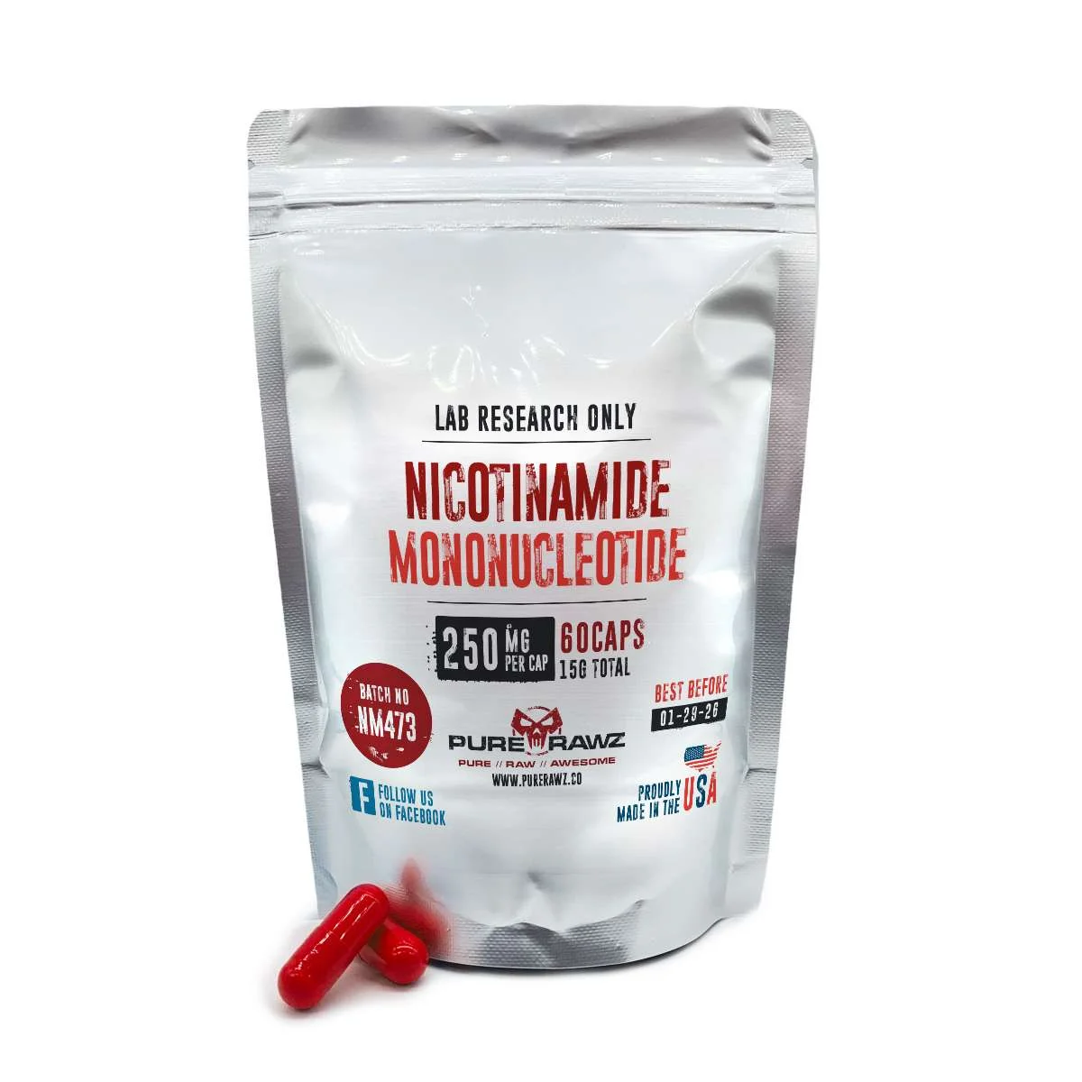 Nicotinamide Mononucleotide (NMN) – Product Information NMN, or nicotinamide mononucleotide, is a known precursor to NAD+ an essential coenzyme and key metabolite found in all human cells and involved in hundreds of cellular reactions. NMN for sale is a research chemical studied in animals and cells to determine its impact on human health. NMN is considered unsafe for human consumption because it is a known research chemical. Nicotinamide mononucleotide CAS Number 1094-61-7 Molar Mass 334.221 g/mol Chemical Formula C11H15N2O8P IUPAC Name 3-Carbamoyl-1-[5-O-(hydroxyphosphinato)-β-D-ribofuranosyl]pyridinium What is nicotinamide mononucleotide NMN? Nicotinamide mononucleotide, or NMN, is a naturally occurring compound in all living things. It is a ribonucleotide, which is a fundamental structural unit of RNA. This chemical is believed to promote a healthy aging process by preventing age-linked alteration in gene expression. NMN might positively affect immune function and brain health and support healthy heart function. Certain studies also state how NMN can benefit animals’ liver and muscle tissue. [ R ] Like all nucleotides, NMN comprises three components: a nitrogenous base, a sugar, and a phosphate group. NMN supplement, unlike the majority of nucleotides, is used to synthesize nicotinamide adenine dinucleotide (NAD) and regulate energy balance. The body produces NMN as an intermediate step or “precursor” to NAD. It is believed that an increase in NMN levels implies increased NAD levels. NAD provides several noteworthy benefits. It boosts bodily energy production, balances the circadian rhythm, and facilitates hundreds of enzymatic reactions (support DNA repair), many of which delay the aging process. NAD levels, particularly the NAD+ form, naturally decline with age in many tissues. Nicotinamide mononucleotide NMN is orally bioavailable in the laboratory studies done on it. NMN for sale is a highly researched chemical, so selling this synthetic compound should only be for research. Any NMN supplement sold should not be used for human consumption. Potential Applications of NMN The following summarizes current animal and cell-based research that should guide future NMN research efforts. We want to emphasize that these studies should not be interpreted as evidence of any health benefit of NMN supplements. As a research chemical, NMN should only be purchased for research purposes, not as a dietary supplement. The FDA does not approve NMN supplements. Muscle well-being Nicotinamide mononucleotide could also improve muscle tissue, leading to enhanced muscle strength. According to Harvard University Professor David Sinclair, who has done extensive research on NMN, NMN supplementation aids muscle growth and recovery by improving blood and nutrient supply to the muscles. [ R ] [ R ] NMN supplementation raises NAD+ levels, restoring endothelial cell growth and delivering oxygen and nutrients to muscle for recovery via the SIRT1 protein. Healthy aging process Telomeres are “tails” of DNA code that repeat at the ends of chromosomes. When a chromosome duplicates, some of its telomeres are lost; as a result, telomeres shorten with age, leading to cell death. According to one study, NMN lengthened telomeres in mouse liver cells, which could lead to healthy aging. [ R ] In mice, who received NMN supplementation, NMN increases the activity of sirtuins, a family of molecules involved in a complex anti-aging mechanism that scientists are only now beginning to understand. NMN is capable of increasing SIRT1 (sirtuin 1) gene activity. [ R ] Sirtuins also protect cells from oxidative stress, DNA damage, and aging. Low sirtuin levels have been linked to aging and diseases associated with aging, whereas high sirtuin levels improve female fertility. [ R ] As we age, our NAD+ levels decrease, and more DBC1 binds to PARP1, preventing proper DNA repair. This process, however, can be accelerated by combining NMN with NAD+. [ R ] The claim is supported by the findings of cells exposed to NMN supplements. Metabolic syndrome In a mouse study, an oral NMN supplement improved several health markers, including weight gain, energy metabolism, physical activity, fat profile, and eyesight. [ R ] Because lab mice only lived for two years and the mice were followed for one year, this was a long-term study. Mice given a high nicotinamide mononucleotide NMN dose lost 18% of their body weight with no additional exercise (300 mg per kg of body weight per day). Surprisingly, younger mice did not benefit; older mice were restored to a “younger” health profile, which could lend credence to the anti-aging capability of the NMN supplement. Alzheimer’s disease Researchers discovered that nicotinamide mononucleotide NMN reversed the effects of Alzheimer’s disease in mice. [ R ] Researchers linked nicotinamide mononucleotide NMN to improved age-related diseases in animal models by increasing nicotinamide adenine dinucleotide (NAD+) levels in cells. The lab-controlled NMN supplement improved not only cognitive function in Alzheimer’s disease-affected mice but also reduced toxic protein production in the brain and the inflammatory response associated with the disease. Kidney NMN may also benefit a specific organ of the human body, the kidney. Another study discovered that giving elderly animal subjects an oral NMN supplement improved kidney function and prevented kidney damage. [ R ] Increased NAD and SIRT1, which activate anti-aging and anti-inflammatory pathways, are most likely to blame. Heart health Blood vessel endothelium is frequently a target of oxidative damage, which includes the buildup of free radicals and reactive oxygen species (ROS). These harmful molecules contribute to plaque buildup because oxidized cholesterol particles cause arterial plaque. Furthermore, high levels of ROS reduce the availability of nitric oxide, which dilates blood vessels and maintains healthy blood pressure. There are, however, 