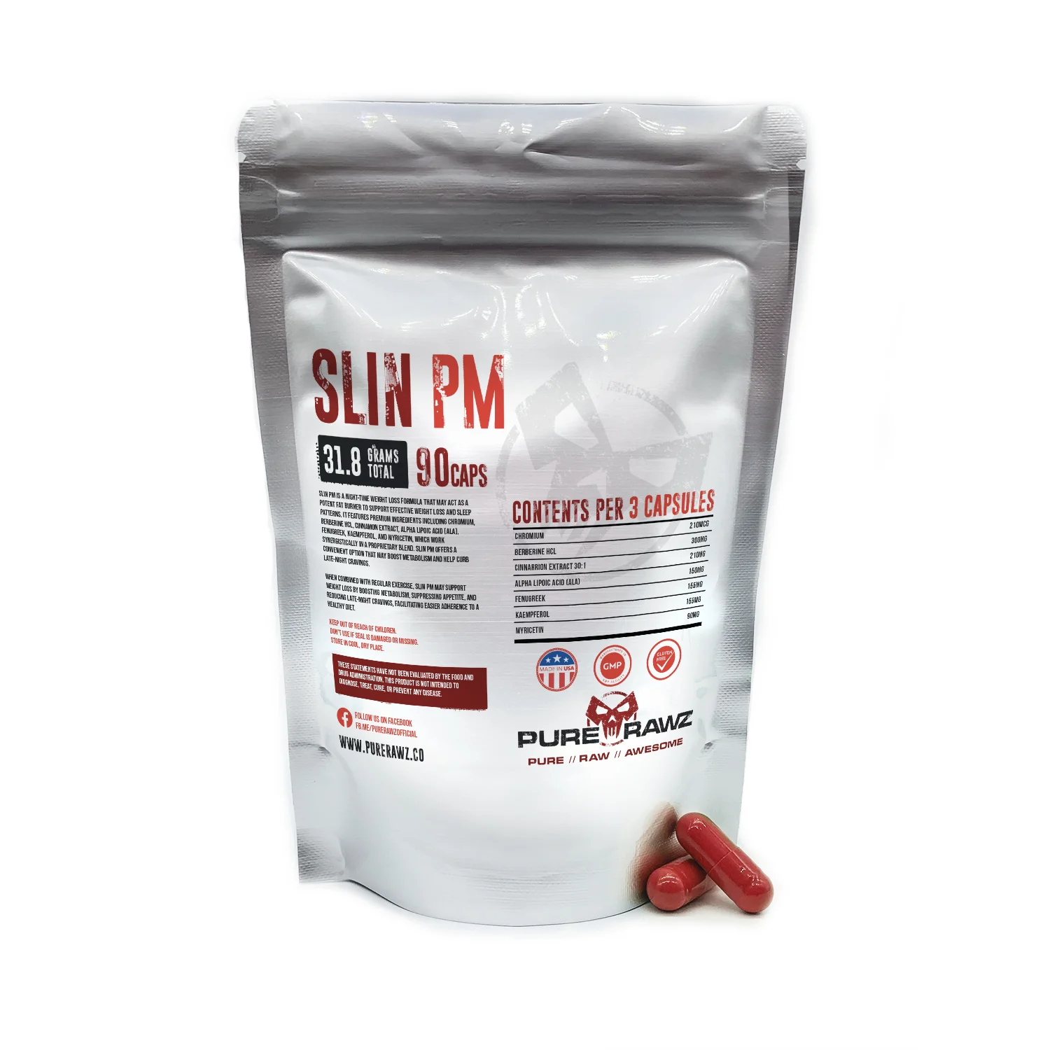 Slin PM – Product Information Slin PM supplements contain 30 servings per container. Slin PM Capsules encapsulates the essence of innovation, scientific rigor, and holistic well-being. With a composition carefully designed to address various aspects of metabolic health and overall vitality, this embodies the spirit of modern wellness. It is based on a wealth of scientific studies that investigate the possible advantages. Numerous studies on the impact of these substances on fat metabolism, insulin sensitivity, and overall well-being have been conducted. An intriguing facet of Slin PM Capsules is their potential to operate while sleeping. This nighttime activity aligns with the body’s natural repair and restoration processes during rest. The ingredients may burn fat without too much weight loss effort, encourage cell repair, enhance insulin sensitivity, alleviate inflammation, and bolster vital functions, collectively contributing to an encompassing sense of well-being. Capsule Contents: Amount per Serving (3 Capsules) Chromium (as Chromium Picolinate) 210mcg Alpha Lipoic Acid (ALA) 150mg Berberine hcl 300mg Fenugreek 155mg Myricetin 90mg Cinnamon Extract 30:1 210mg Kaempferol 155mg Please be aware that the packaging of the product you receive might not exactly match the product image displayed on our website. At times, we make changes to the labeling as part of our ongoing improvement process, and on occasions, we may ship directly from our supplier to expedite order fulfillment. However, please rest assured that the product you receive is identical to what is advertised and meets our high standards of quality. What is Slin PM? Slin PM Capsules are meticulously crafted that combine a fusion of natural ingredients, each contributing to a specific facet of health support. This comes with 90 capsules per container. Chromium (as Chromium Picolinate) – 210mcg: Chromium plays a pivotal role in supporting glucose metabolism and insulin sensitivity. Emerging research suggests that chromium picolinate, a highly bioavailable form, may potentially assist in regulating blood sugar levels and potentially enhancing insulin’s efficacy. (R) Alpha Lipoic Acid (ALA) – 150mg: Alpha lipoic acid, a potent antioxidant, may aid in managing oxidative stress and promoting healthy cellular function. Its potential in supporting metabolic health and insulin sensitivity has garnered significant attention in recent scientific studies. (R) Berberine HCl 300mg : Berberine, which is derived from many plants, has been intensively researched for its ability to enhance glucose metabolism. It may help improve insulin sensitivity and blood sugar levels, making it an essential component of the Slin PM Capsules composition. (R) Fenugreek 155mg: Traditional medicinal plant fenugreek has been linked to possible advantages for glycemic management and lipid metabolism. Its presence in these capsules emphasizes its importance in overall health support. (R) Myricetin 90mg: Myricetin, a flavonoid present in fruits and vegetables, has anti-inflammatory and antioxidant effects. According to research, myricetin may help enhance insulin sensitivity and general metabolic health. (R) Cinnamon Extract 30:1 – 210 mg: The potential of cinnamon extract to promote insulin sensitivity and blood sugar management has come to light. Its relevance in the formulation is highlighted by the capsules’ concentrated form. (R) Kaempferol – 155mg: Kaempferol, a flavonoid abundant in various plant foods, holds promise in managing inflammation and promoting cardiovascular health. Its presence aligns with the capsules’ holistic approach to well-being. (R) Possible Application of Slin PM Slin PM Capsules, with their unique blend of carefully selected ingredients, offer a range of potential applications that contribute to overall health and support metabolism. Here are some potential applications of Slin PM Capsules based on the properties of their key components: Blood Sugar Regulation The inclusion of ingredients like chromium picolinate, berberine HCl, fenugreek, and Cinnamomum extract suggests that Slin PM Capsules could play a role in regulating blood sugar levels. These components have been studied for their potential to enhance insulin sensitivity, support healthy glucose metabolism, and assist in managing blood sugar fluctuations. (R) (R) (R) Metabolic Support Alpha lipoic acid, berberine, and fucoxanthin are known for their potential to support metabolic health. These ingredients may help optimize metabolic processes, improve energy utilization, and contribute to weight management goals. (R) (R) (R) Antioxidant Defense Alpha lipoic acid and other compounds in Slin PM Capsules possess antioxidant properties. These antioxidants potentially aid in neutralizing harmful free radicals, reducing oxidative stress, and promoting healthy cellular function by maintaining cell integrity and encouraging cell repair. (R) Cardiovascular Health The presence of kaempferol and other flavonoids in the formulation suggests a potential benefit for cardiovascular health. These compounds may support blood vessel function, reduce inflammation, and contribute to overall heart health. (R) How Does Slin PM Work? Slin PM Capsules work by a methodical scientific procedure that takes advantage of the interactions among its main constituents. Multiple paths and processes are involved in this process, which together adds to the capsules’ potential for health benefits. A broad description of how Slin PM Capsules may function in the body is provided below: Blood Sugar Control The ability of the chromium picolinate in Slin PM Capsules to improve insulin sensitivity has been researched. A hormone called insulin is essential for controlling blood sugar levels. The capsules potentially support enhanced glucose absorption by cells and better insulin sensitivity, both of which support stable blood sugar levels. (R) Physiological Support Alpha lipoic acid, fenugreek, and be